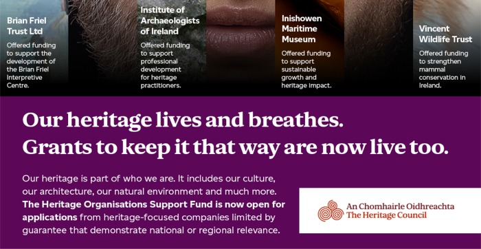 The Heritage Council scheme enables heritage organisations to fund staff salaries, rent costs, the hiring of new staff, training and skills development and piloting new ways of working. Applications can be made online on the Heritage Council’s online grants management system until 5 pm on Monday, 26 January 2026.