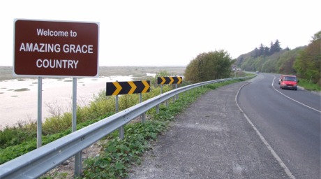 One of the new 'Welcome to Amazing Grace Country' signs around Buncrana. The marketing campaign refers to the famous hymn penned in the 1700s by John Newton, a slave ship captain who had a spiritual epiphany after finding refuge from an Atlantic storm in Lough Swilly and later became a Church of England clergyman.