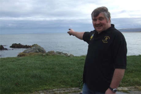Scuba diver, Seamus Carey, points to
