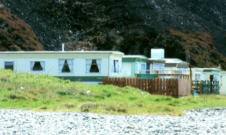 Some of the mobile homes located on the secluded beach at Culoort, Malin Head.