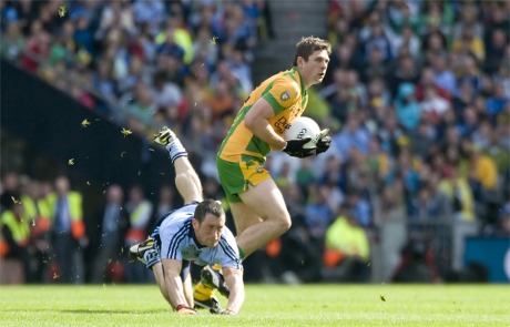 Colm McFadden was the best forward on the pitch on Sunday. Donegal played with only McFadden up front, and although he had three and sometimes as many as five defenders for company, he was able to win the ball kicked into him and hit two excellent points from play as well as converting two frees.