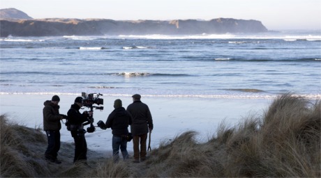 The 'Grabbers' film crew on location at the Five Fingers Strand. Photo: Jonathan Hession.