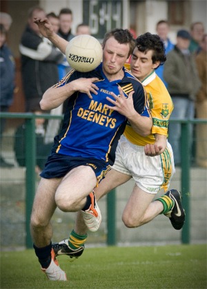 Aidan Lynch, who had a fine first half a midfield, and Damian Diver scored points before Dermot Keaveney got the goal when his 25 yard shot deceived keeper Emmet Doherty and hit the back of the net.