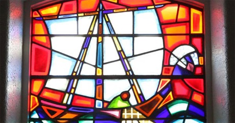 An example of the late Helen Moloney's stained glass as it appears in the Star of the Sea church in the Parish.