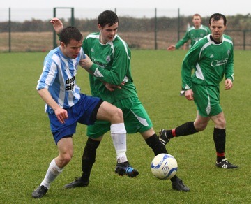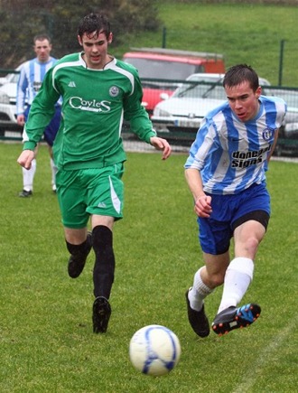 The game’s key moment arrived ten minutes before the break when Colin Ferry’s deflected shot brought Gweedore Celtic back into a game they looked likely to lose. Until that point the home side were cruising, two-goals up and controlling possession. After Ferry’s fortuitous goal Gweedore homed in on a fine come-from-behind victory.