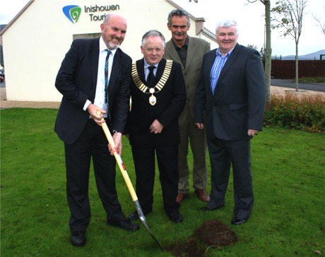 Chairman of Inishowen Development Partnership, Anthony Doogan; Buncrana Mayor Cllr Peter McLaughlin; IDP manager Andrew Ward and Amazing Grace Initiative chairman Nicholas Crossan pictured at the sod turning for the Amazing Grace Reflection Park at Railway Road, Buncrana.