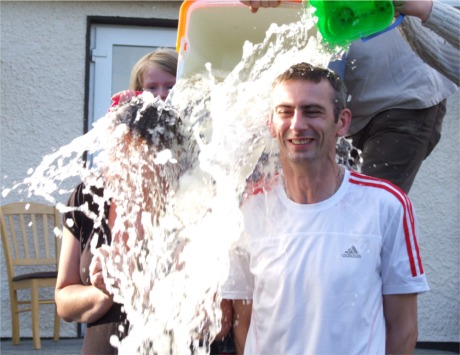 Mary and PJ get a good ducking in the Ice Bucket Challenge.