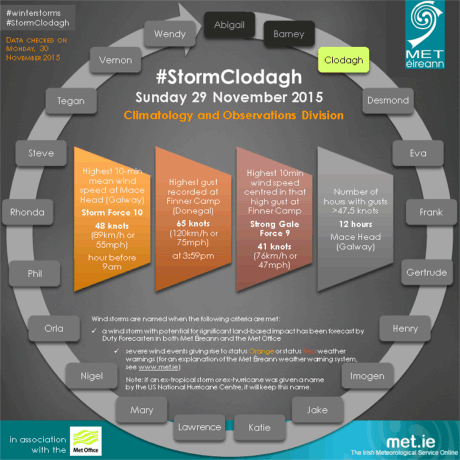 The names were chosen last October by Met Eireann in