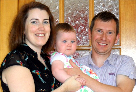 Anne Monagle from Malin, who has attained the highest Accounting Technicians exam marks in the country, with her husband Denis and daughter Allanah Rose.