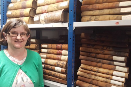 Niamh Brennan, with some of the rich collection of records held by the Archive Service.