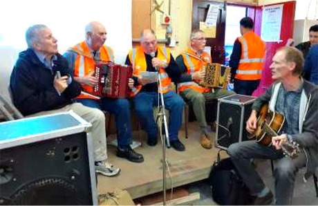 A performance on the ‘Open Night’ by participants of the newly established Music Night which takes place on Mondays at the Men’s Shed Carn.