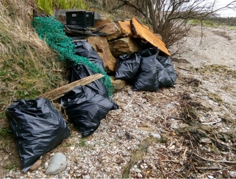 Rubbish collected during a recent clean up on Clar Beach by Redcastle Tidy Towns Committee.