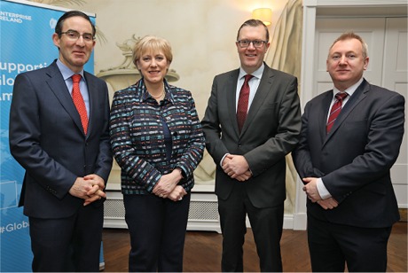 Minister Heather Humphreys pictured with Declan Hughes, Department of Business, Enterprise Ireland Divisional Manager for Regions, Mark Christal and Aidan McKenna, Regional Director.