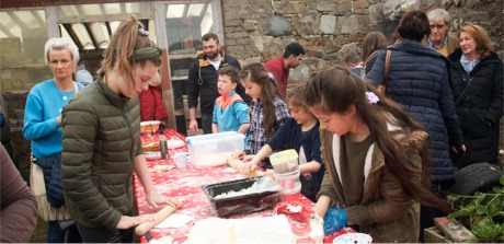 Local baker Gerard Moynes, known widely for his soda bread which is sold at Molly's Café in Carndonagh used the wood fire oven to bake traditional Irish breads. A lively character; he thrived on sharing recipes and stories of bread making. Participants enjoyed tasting the fresh breads and jams and taking down recipes on greaseproof paper.