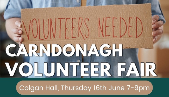 Following on from Carndonagh Smart Village training and the needs highlighted through the ‘Envision Inishowen’ series in 2021, Carndonagh is hosting a Volunteer Fair on Thursday 16th June from 7pm - 9pm in the Colgan Hall.