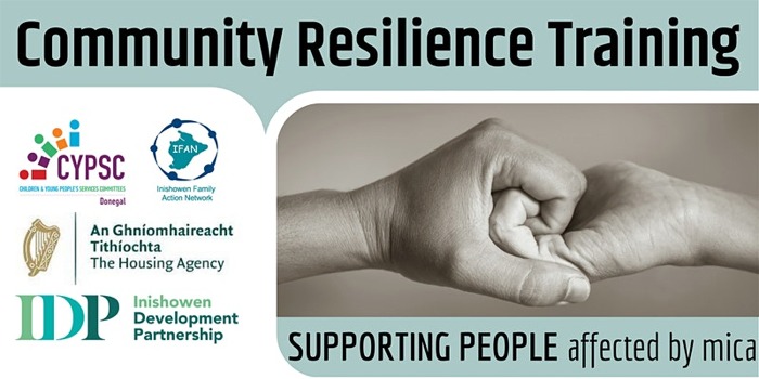 This is the second round of community resilience training, this time funded mainly by the Children & Young Peoples Services Committee (CYPSC), and is co-ordinated by the Inishowen Development Partnership (IDP) in collaboration with the Inishowen Family Action Network (IFAN) Mica subgroup.