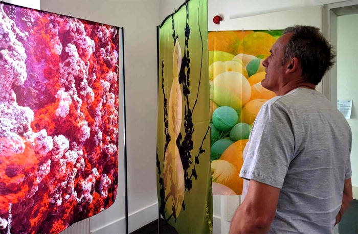 Visitor enjoying Fiona Mulholland’s new solo exhibition ‘In Search of Pearls & Future Fossils’.