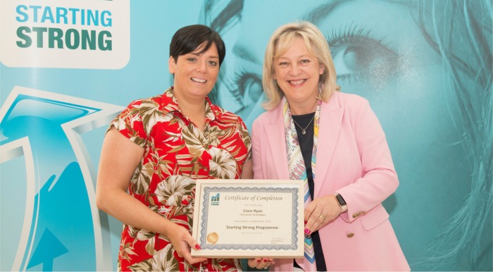 Clare Ryan receiving her Certificate of Completion from Susan Spence at the Starting Strong event in Dublin on 21st June 2022.