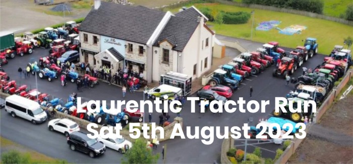 The tractor run will take place on Saturday August 5th at 10am at the Laurentic Bar. Participants will drive around Bridgend, Muff, Moville, Gleneely, Carndonagh, Clonmany and back to the Laurentic Bar. Along the way, they will stop at Londis in Drung and the Orchard Bar in Gleneely for light refreshments.