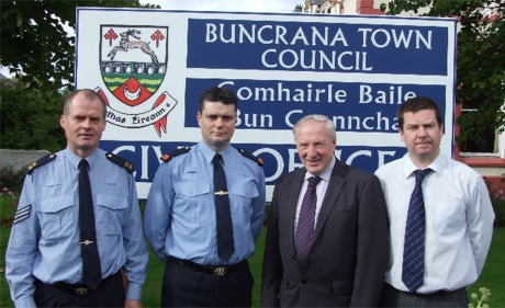 Pictured at a policing committee meeting to explore installing CCTV around Buncrana are, from left, Sergeant Danny Devlin, Inspector David Kelly, Cllr Joe Doherty and Buncrana Town Clerk, Seamus Canning.
