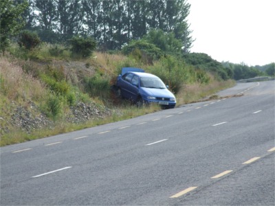 A car that ended up on the ditch in Drung, Redcastle last weekend. It is understood nobody was hurt in the incident.