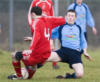 taking on a straightforward shot. Carndonagh doubled their lead just after half hour mark when Andy Doherty embarked on a good run and found Eanna Newton with a slide rule pass. The young striker kept his head and coolly slotted into the bottom corner. Centre back Kevin Hirrell was lucky to escape with a booking after a two-footed lunge on Jason McElhinney that forced the Gleneely man to have to come off at half time. |