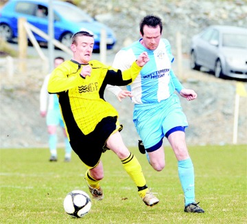 however. Hesitant Lagan defending was almost punished midway through the opening period when Alan Orr pounced to rifle a low shot, which was brilliantly turned round the post by Tony Blake. Struggling to adjust to the wind, a succession of Glengad attacks resulted in long balls sailing over Lagan’s end line much to the annoyance of manager, Liam McClean, who shouted ‘feet, feet, feet’. Glengad frontmen, Orr and Doherty, were in on the act again before Lagan Harps' defender Ciaran McCarron cleared the danger. Orr’s ensuing corner was punched clear by Blake and Terence Doherty’s follow-up effort went wastefully wide. Further efforts by Glengad’s Alan Orr, Stephen McLaughlin and John Gerard McLaughlin all failed to trouble Blake before Kevin Kelly and Chris Toner combined to fashion a half-chance for the visitors. Penned back for much of the half, Lagan defenders Seamy People’s and Ronan Curran stood strong in the face of a Glengad storm. The home side could have taken the lead in the last seconds of the first-half but Blake’s heroics put paid to their hopes once again. A pinpoint John Gerard McLaughlin pass put Stephen McLaughlin in on goal but the Lagan keeper made another amazing save to keep the teams level. Bouyed by surviving a Glengad onslaught and with the wind now at their backs, Lagan began the second-half in more confident mood. A Kevin Kelly cross almost produced an own goal when Glengad defender Shane Doherty sliced the ball over his crossbar before a long Tony Blake clearance almost had Chris Toner scampering clear. Electing to keep the ball on the ground against the breeze, Glengad almost took the lead when John Gerard McLaughlin crossed for his namesake, Stephen. Yet again though the home team were denied by a point blank Blake save. Paying the ultimate price for not converting their chances, Glengad fell behind moments later when pacy Lagan striker Chris Toner took full advantage of a horrible mix-up in the home penalty area to roll the ball into an empty net. It was Harps’ first shot on target of the contest. Toner almost doubled Lagan’s advantage a minute later when he was picked out expertly by Ronan Curran. This time Glengad keeper Michael McLaughlin was equal to the test, blocking Toner’s attempt with his legs. The home side, who played the last twenty minutes with three strikers, couldn’t find a way through despite the best efforts of Stephen McLaughlin, Shane Doherty, John Gerard McLaughlin and substitute Charlie Byrne. Glengad’s last chance was dragged wide by Terence Doherty in the third minute of injury time and Jason Gibson’s men had held on for an unlikely win. Dispatching of Cockhill in the quarter-final, Lagan will be hoping they can make it three Inishowen scalps in-a-row when they take on cup holders, Moville, in the marquee final next month. Harps will happily assume the familiar role of underdogs again. Glengad United: Michael McLaughlin, Lee Kelly, Ruairi Doherty, Michael Farren, Shane Doherty, Patrick Doherty, Stephen McLaughlin, John Gerard McLaughlin, Terence Doherty, Alan Orr, Jason Doherty. Subs: Patrick McDermott, Paul McGonigle, Charlie Byrne. Lagan Harps: Tony Blake, Ciaran McCarron, Paul Rodgers, Seamus Peoples, Ronan Curran, Ronan Gibson, Marty Brogan, Aidan O’Donnell, Chris Toner, Kevin Kelly, John Gallagher. Subs: Jason Burke, Michael Toner, Jason Gibson, Damian McFadden. For full coverage of all your weekend sport, read the Inishowen Independent. |