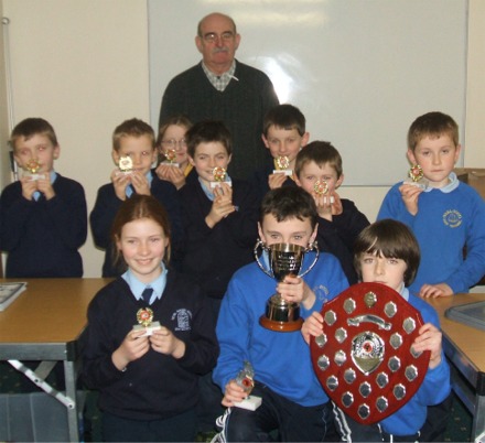Pictured with chess tutor Tony McDermott are Lee Smith (2nd place in the Junior Category); Matthew Richmond; Peter Duffy (1st place in the Junior Category); Catherine Lynch; James Lynch; Michael Lynch; Fergal McGuinness (2nd place in the Senior Category); Emma McCauley; James McCauley and Martin Fiorentini (1st place in Senior Category, winner of the Brian Lloyd Perpetual Cup).