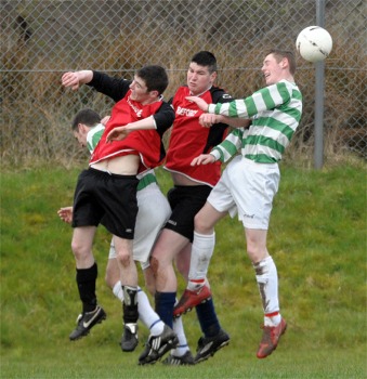 FOR A long time it looked as if a brave header from Cockhill’s Stephen McLaughlin twenty-seven minutes into the first half, was going to be enough to settle this closely contested derby. And it wouldn’t have been a surprise in a game that could just as easily have had an air traffic controller as a referee.
