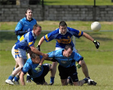 close range. Points from Barrett and David Curley extended Milford’s lead to 13 points before Muff registered their second goal when Oisin McColgan picked up a low Aidan Lynch drive across the goalmouth and slammed to the net. The visitors responded with late points from Bradley and Barrett while Naomh Pádraig could only muster a Barry Hegarty free. Naomh Pádraig were disappointed with their level of performance, but Milford will be happy to win both legs of the tie and advance to the semi-finals without recourse to a play-off. Naomh Pádraig now must focus on promotion from Division 4 of the All County League. |