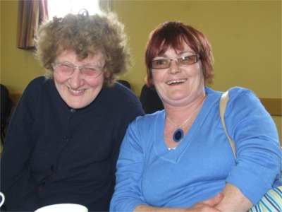 Isabel Taylor from Carnamaddy, Burt with Frances Dowds at the 'Big Brew' for Mena Burns. This antique dresser provided a clever centrepiece for the Tea Day in Burt for the Alzheimer's Society of Ireland. The Quinn and Groarke families from Burt and London. From left, Anne McDaid and her daughter Orla and Geraldine McDermott and her daughter Shanice. Some of the people who called in to Burt Hall to support the Tea Day in aid of the Alzheimer's Society. Burt's Paddy Campbell enjoys the delicious cakes on sale at the fundraiser in Burt Hall. The late Mena Burns' daughter and son, Mary Coyle and John Burns. The Burns family of Burt who organised the Tea Day in memory of their beloved mother Mena.