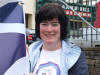 Four year old Roisin Harkin from Buncrana takes cover during the 'Give it a Swirl Day' for volunteers in Carndonagh.