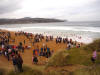 The many hardy souls who turned out for Culdaff's annual New Year's Day charity swim.