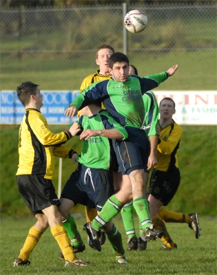 With Illies labouring unsuccessfully to make headway against the mobile Castlebar backline, chances were at a premium for the Inishowen men, however William McLaughlin did enjoy limited success along the left wing and on 28 minutes he cut into the visitors box but his finesse-free cross struck a yellow shirted defender at he near post.