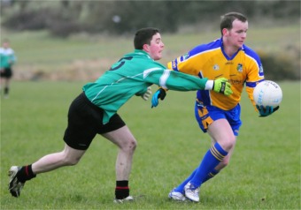 A converted free by Mickey Harkin levelled the score before Darragh Doherty put Urris in the lead two minutes later with a similar score. Urris scored an unexpected goal soon after when Mark McLaughlin took advantage of a mishap by the young McDermott in goals and stretched their lead to four points.