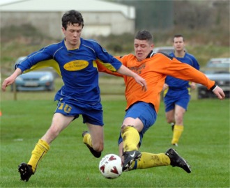 A minute later Paul McHugh’s effort for Aileach was well saved by Gleneely keeper Adrian Duffy. In the 43rd minute there was a flurry of shots in the Gleneely box with Simon McLaughlin’s effort off the bar coming closest.