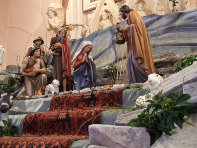 The lovely crib in front of the altar at St. Mary's Church, Cockhill.
