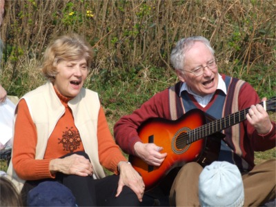 Joyce and Aidan O'Hara entertain the children at Moville's Shore Green.