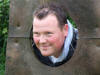 Redcastle F.C., manager, Brian Bell, in the stocks for the sponge-throwing competition.