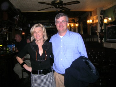 New York State Democratic Assembly member, Brian Kavanagh, chats to Jean O'Flaherty of O'Flaherty's Bar, Buncrana, during his recent visit to his father's hometown.